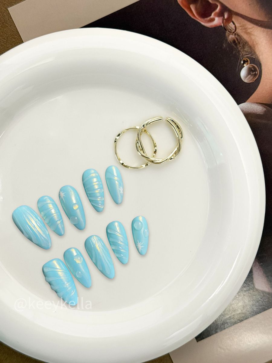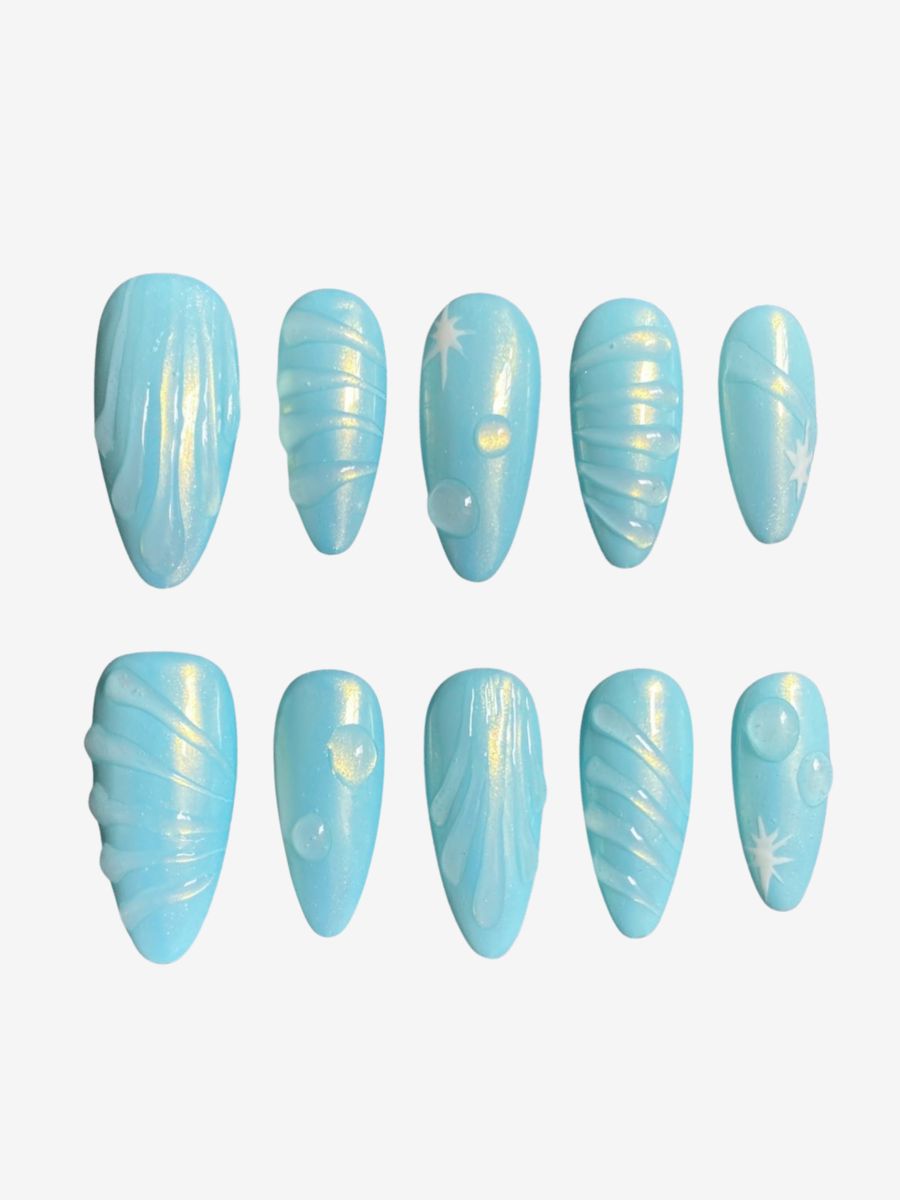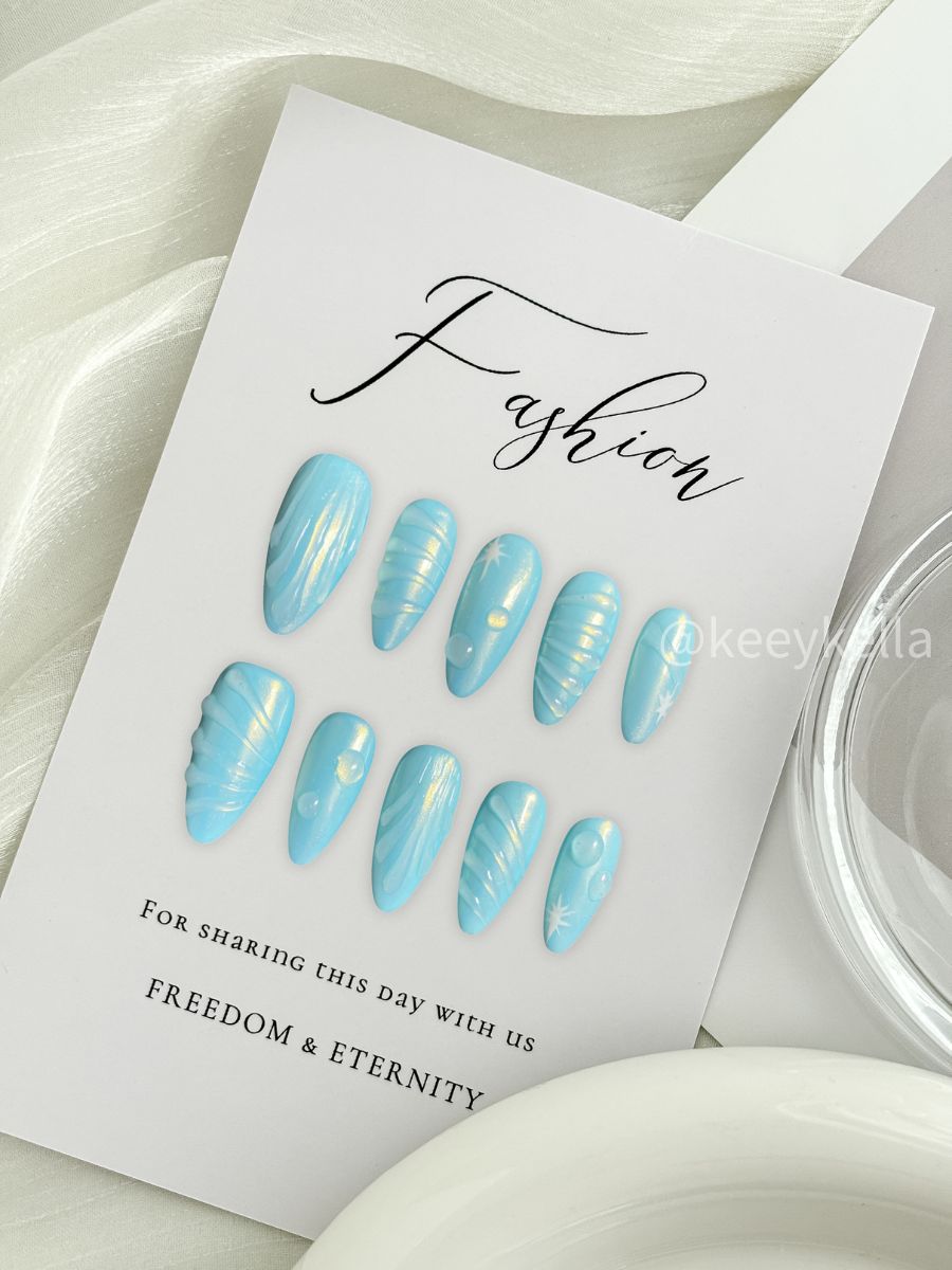 Inspired by water flow and water drops, the clear water and ice blue tones blend perfectly to present an unexpected ethereal beauty.