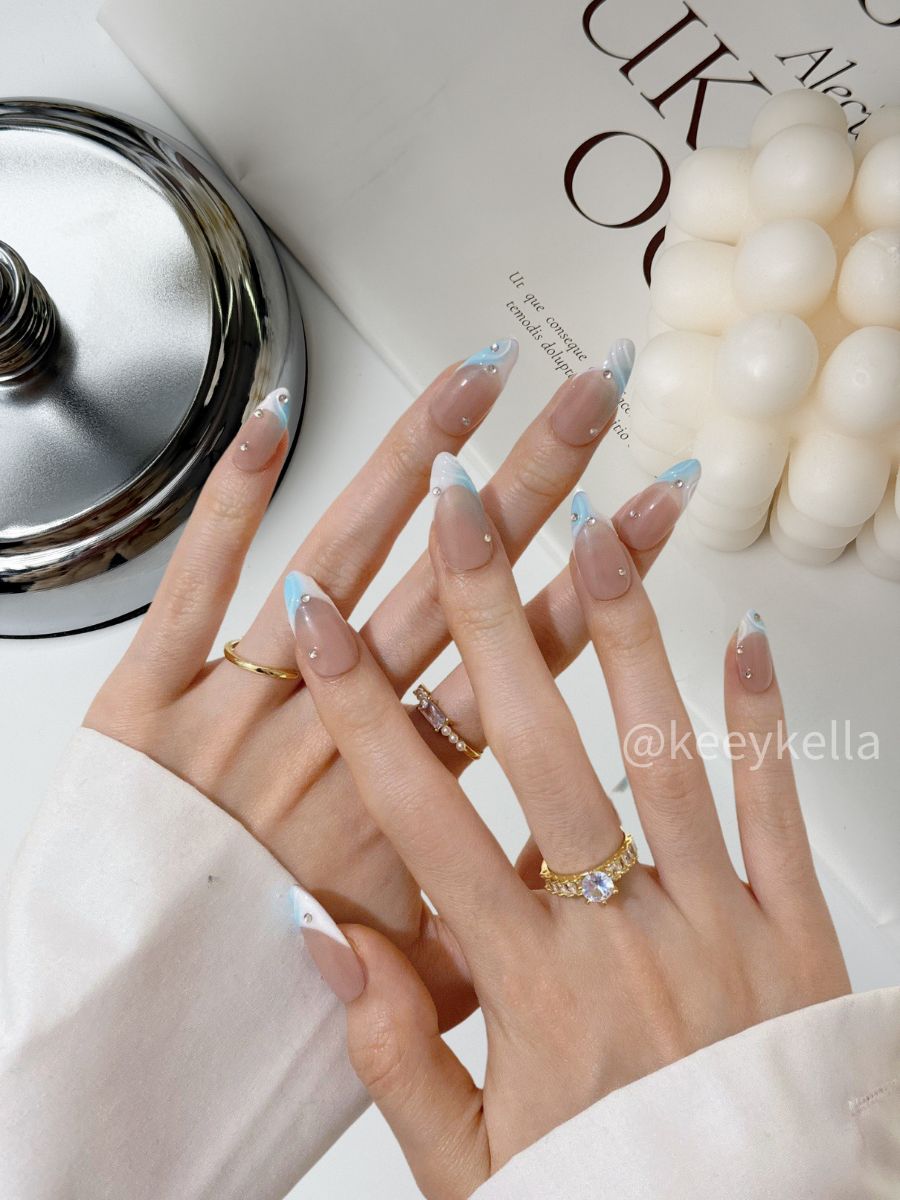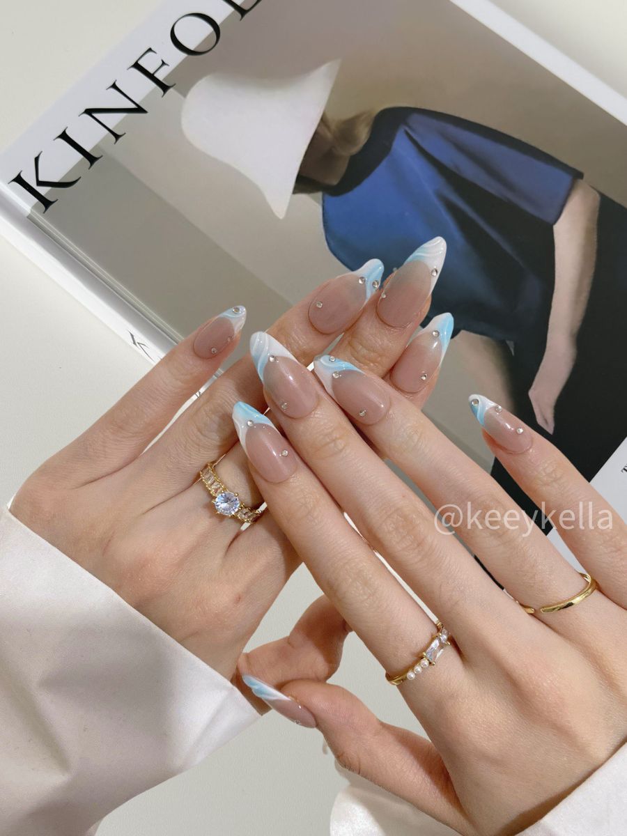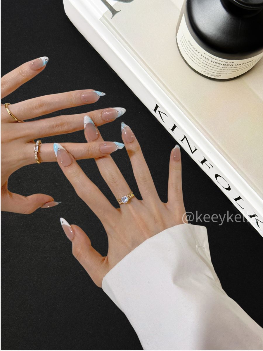 Inspired by the tranquil beauty of the sea. Soft beige and light blue mimic the beach and gentle waves, while pearls represent precious moments washed ashore.